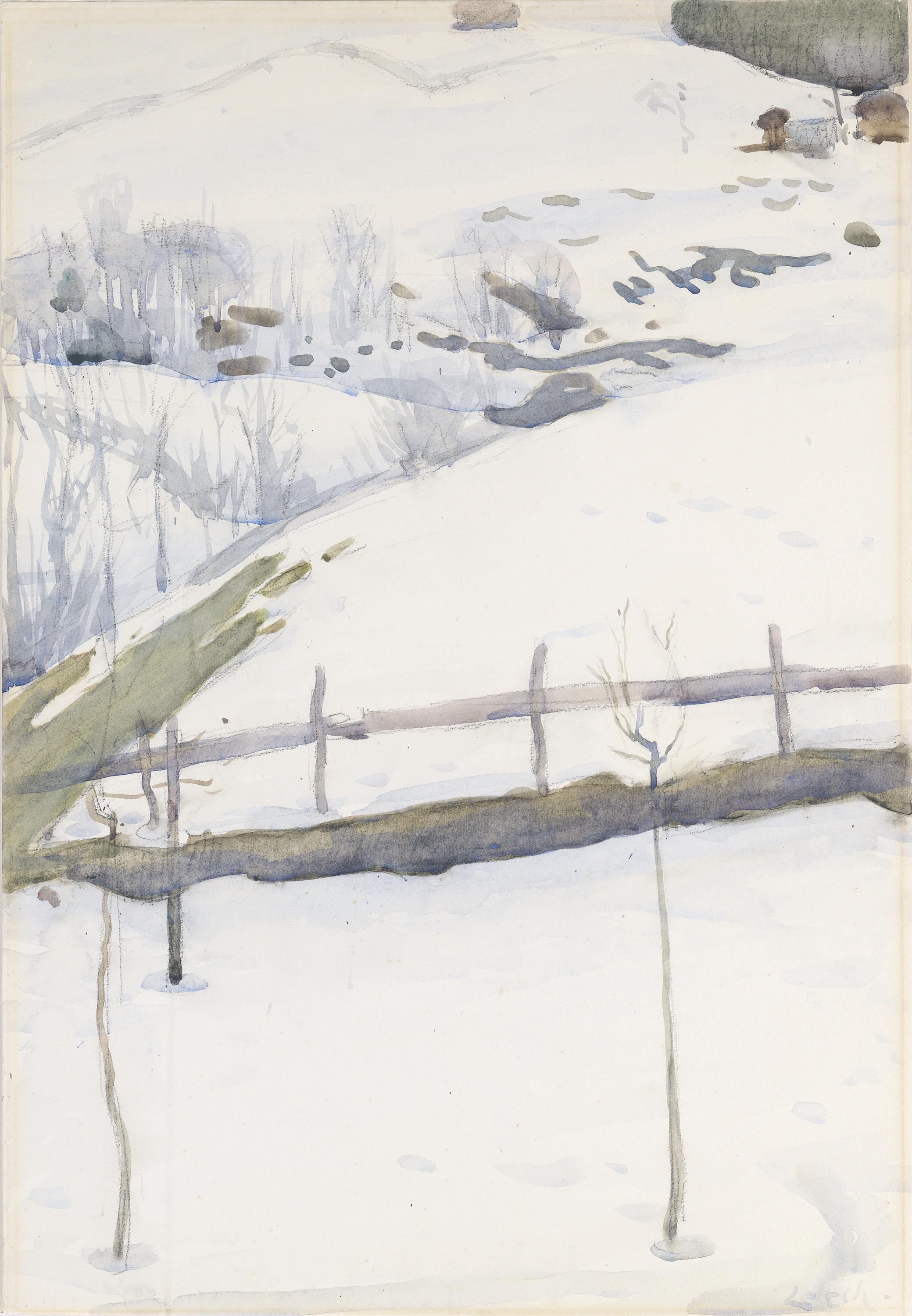 DescriptionLeech trained in Dublin at the Metropolitan School of Art and the Royal Hibernian Academy, where he was taught by Walter Osborne. In 1901 he travelled to Paris to study with Bouguereau and Laurens at the Atelier Julian. He settled in Concareau, Brittany in 1903 and was based there until 1910. While in Brittany he began to experiment in oils, focusing on the effects of light on colour. A Snow Covered Field was probably painted in Switzerland in 1910 or 1911. Sensitively executed with delicate colouring, it is reminiscent of Whistler's style in its linear division, flatness and asymmetry. The dark trees silhouetted against the snowy field create a striking contrast, while the unusual perspective has echoes of Japanese graphic art.