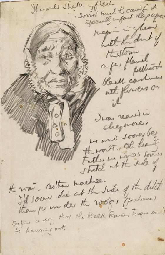 DescriptionHenry found the islanders of Achill reticent and introverted. Although he soon made friends with many of them, as for drawing and painting them he often had to work furtively, for the superstition still lingered that in making images of people one was somehow or other taking something from them. The result was that he had to work covertly. Known pejoratively as 'the sketcher', he had to draw in a sketchbook concealed behind other papers, a practice that led him to make copious notes on his subjects alongside his drawings. The Village Gossip, rich in personality and capturing the whole essence of life for the islanders, aptly illustrates the procedure and such sketches were used (often years) later as sources for compositions.