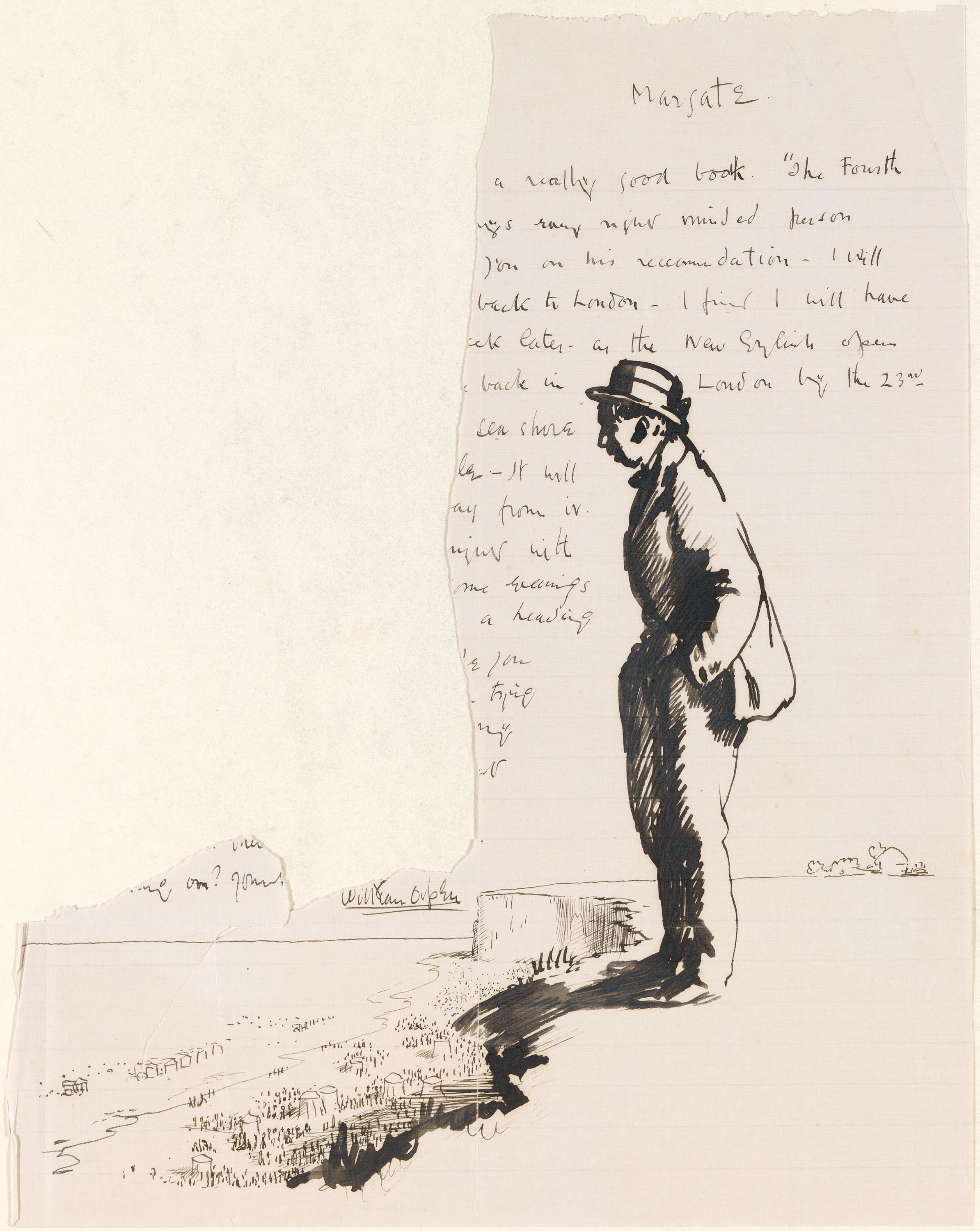 Title: Cropped letter from William Orpen to Mrs St George with a Sketch of the Artist at Margate, Kent