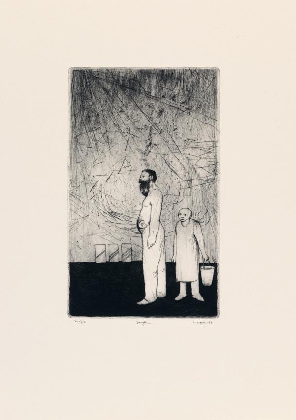Signed: lower right (under the plate, in graphite) : Lief Elggren 84