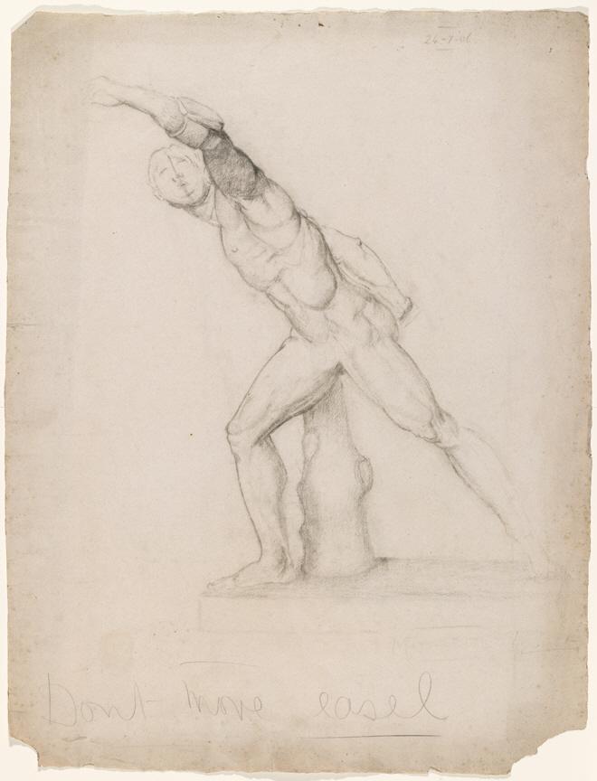 Title: Study of a Greek Statue of a Stretching Male Nude with an Elbow Guard; Study of a Standing Female Nude (on verso)