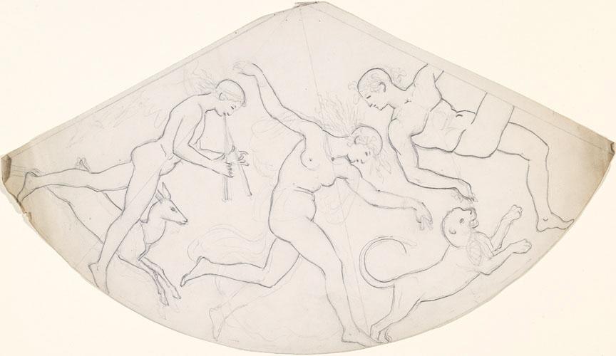 Title: Part of a Circular Design with Dancing Nude Figures and Animals