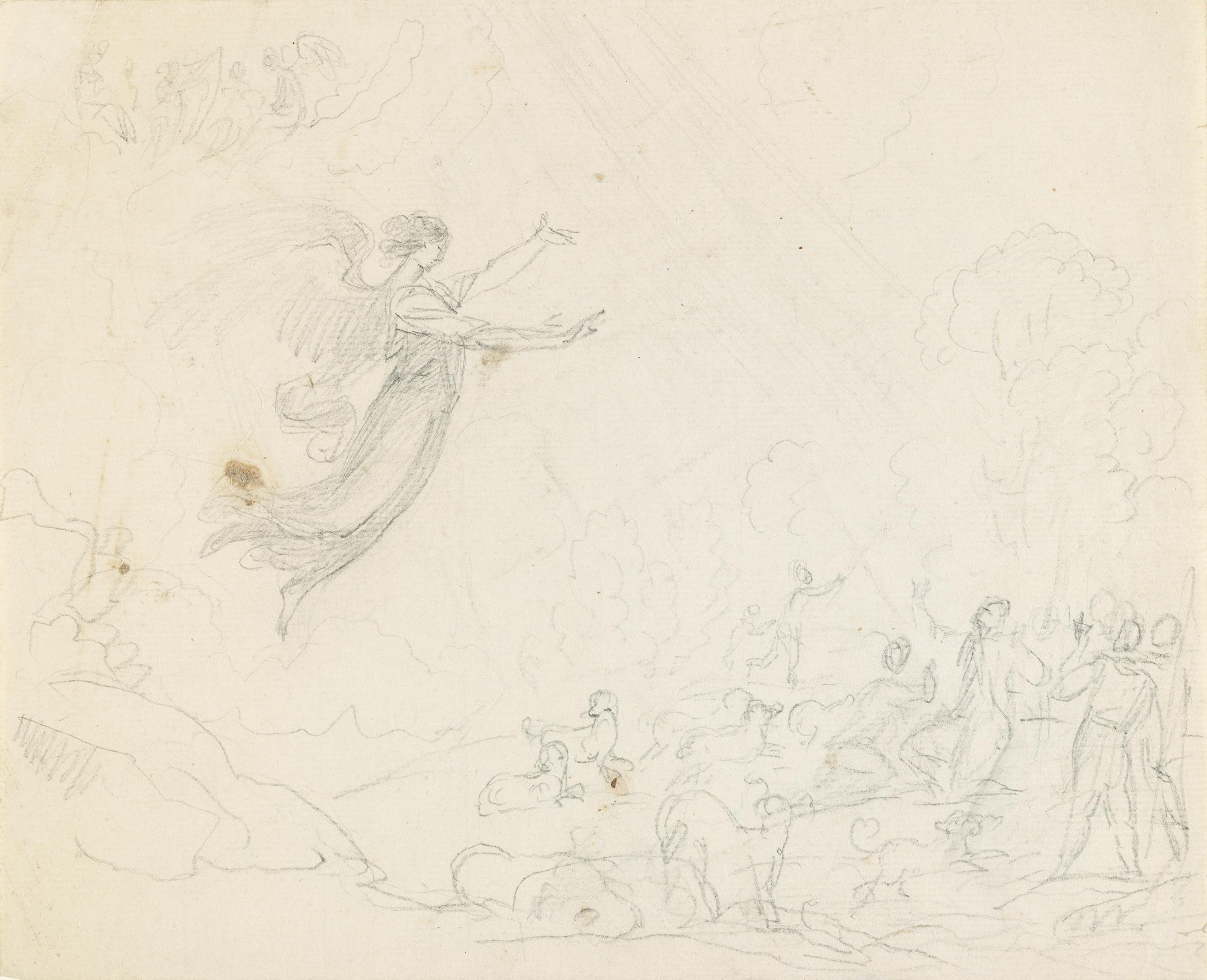 Title: Religious Scene with Angels and a Crowd of People