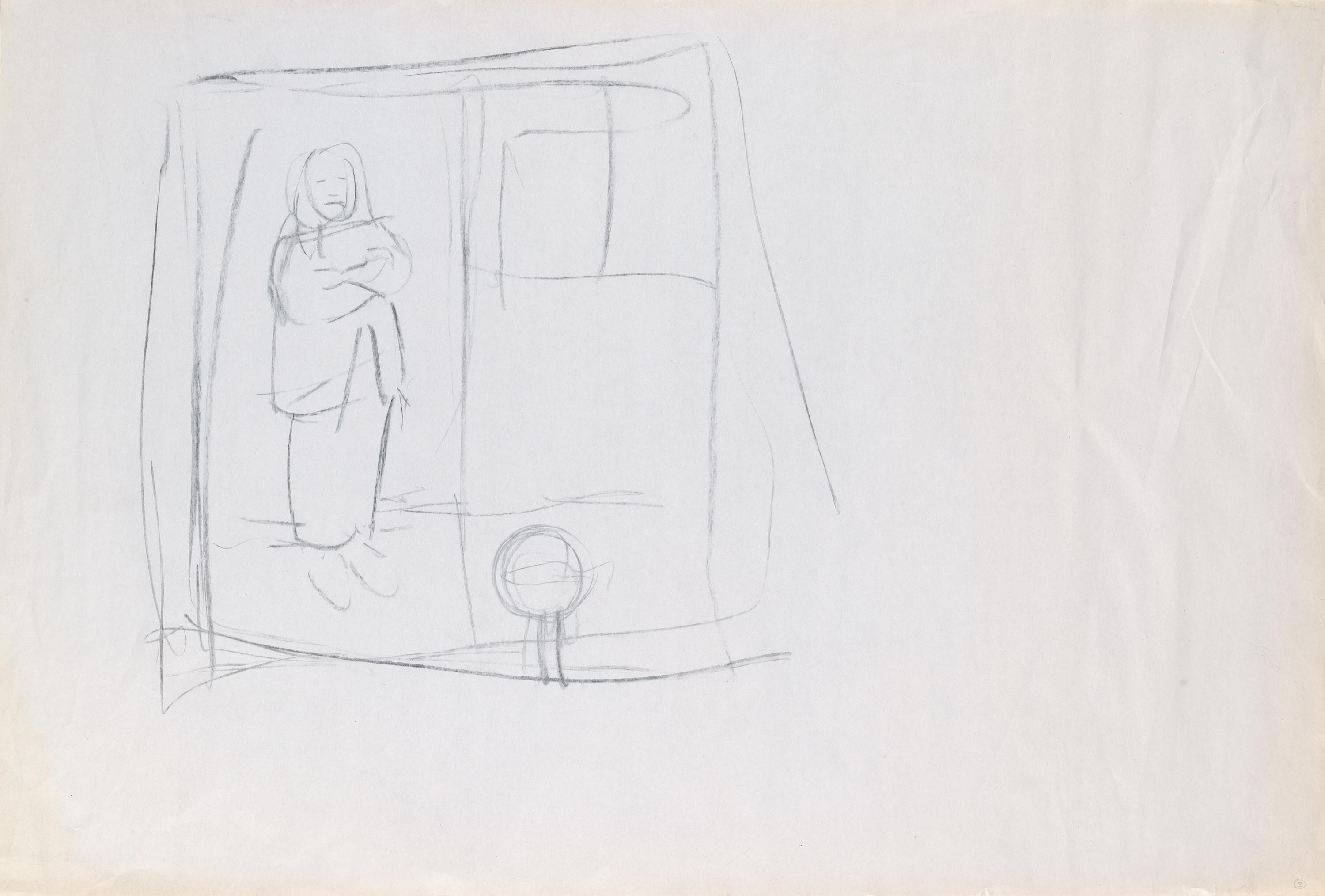Title: Compositional Sketch with Seated Figure and Texts