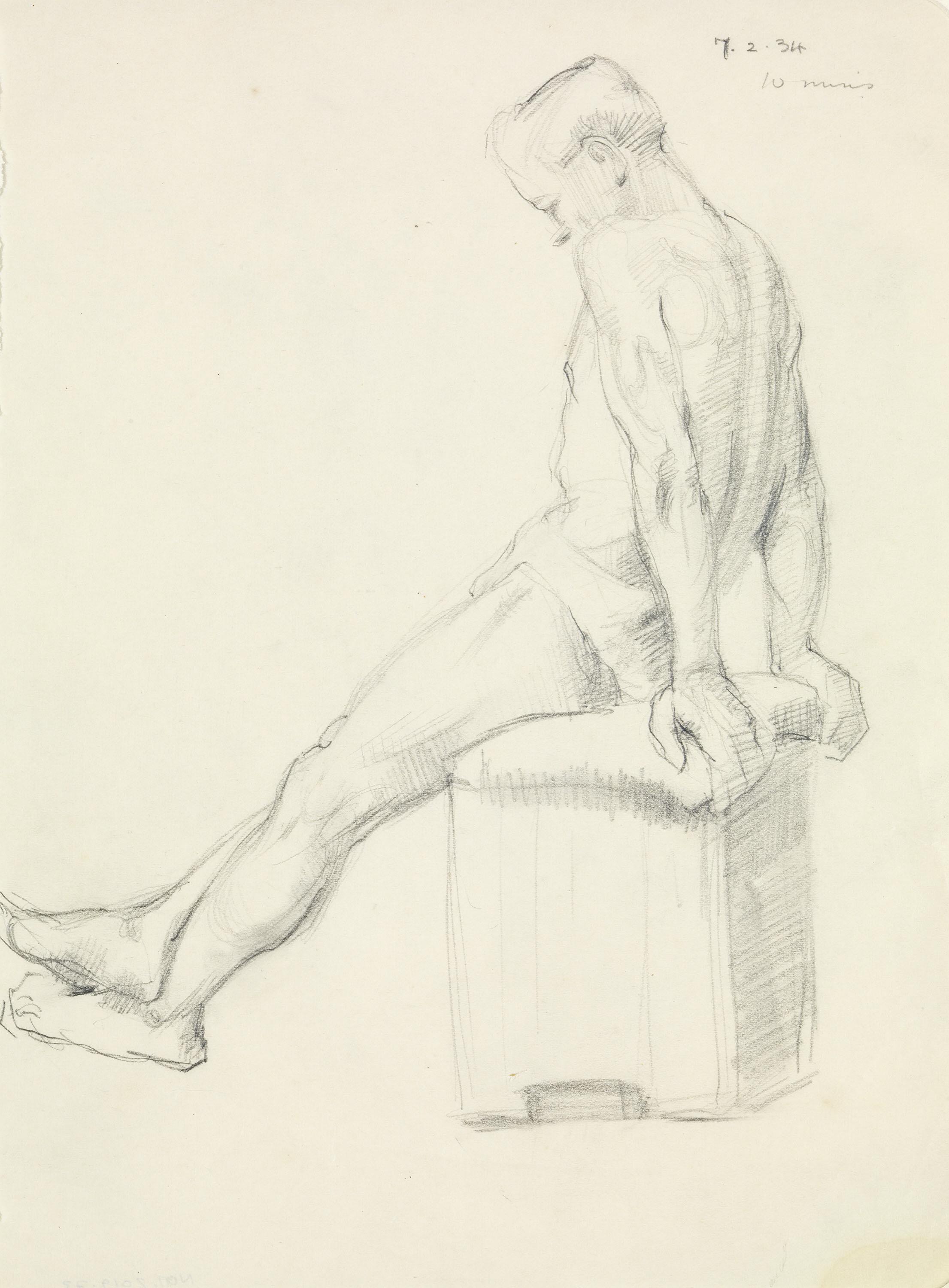 This representative collection of study material forms part of the Prints and Drawings collection. The group of works (ngi.2019.68-88) comprise figure drawings, produced during the artist’s time as a student of the Metropolitan School of Art, with many inscribed 1933, 1934 and 1937, along with a gouache of Ventry Bay, dated 1939, together with two later sketchbooks, dated 1969 and 1973. These enhance the collection of four sketchbooks by the artist, dated c.1931-34, acquired by the National Gallery of Ireland in 2018. This selection of works on paper forms part of a larger body of work, including figure drawings, poster and textile designs, gifted by the artist’s family to the NGI Library and Archive collections. This generous gift gives researchers a greater insight into the artist’s student work, along with the various strands of her output. The acquisition also enhances the work of Irish women artists within the collection.