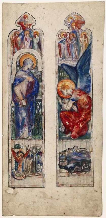 Title: The Annunciation and Angel Musicians, with the Expulsion of Adam and Eve Asleep