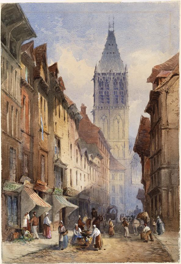 Title: The Tower of St Romain Church, Rouen, from Rue Horlogue