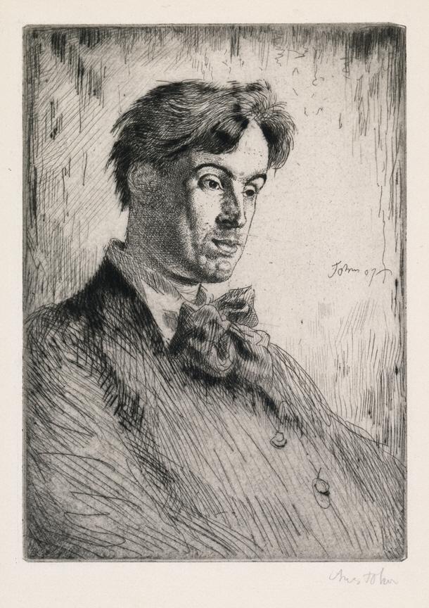 DescriptionThe English artist Augustus John made his first etching in 1901, and produced some 130 etchings during the period 1901-1910. In the main they were on small plates, printed in small editions and focused on the human figure. This print was issued by the artist in 1907 in an edition of 50. It was commissioned as a frontispiece for Yeats's Collected Works of 1908. Yeats complained that John's likeness made him seem: a sheer tinker, drunken, unpleasant and disreputable, but full of wisdom, a melancholy English Bohemian, capable of anything, except living joyously on the surface.