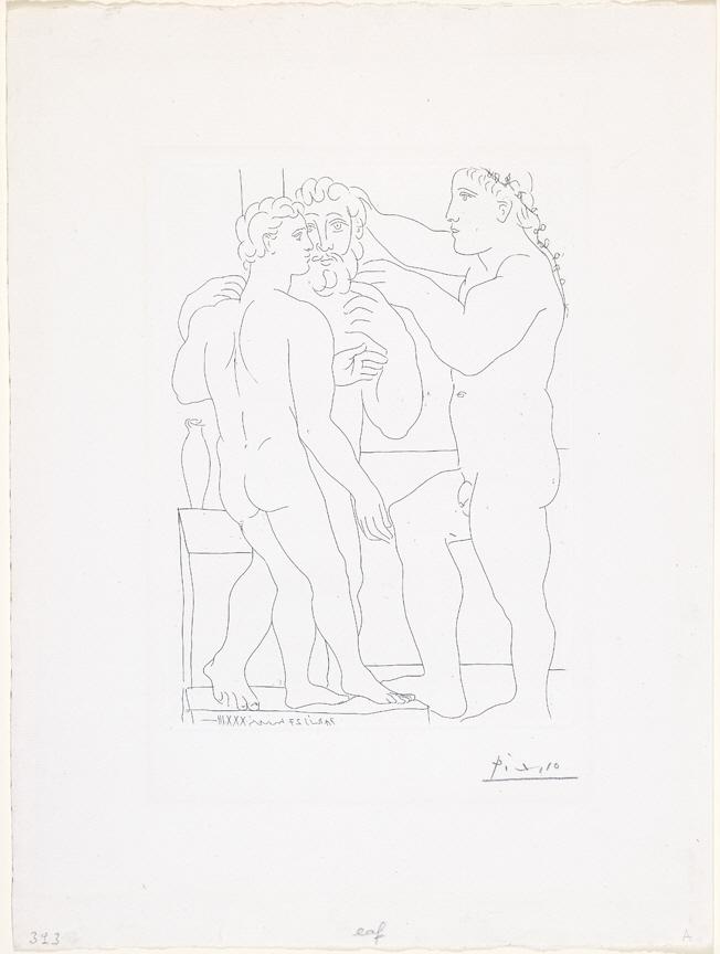 DescriptionThis print forms part of Picasso's Vollard Suite, a series of 100 etchings, commissioned by Ambroise Vollard, the important French publisher. It is Picasso's great exploration of classicism, containing themes which reflected his interests including the Minotaur and Pygmalion (the artist obsessed with his model). This print belongs to the series L'atelier du sculpteur (the sculptor's studio). Between March and May of 1933 Picasso worked obsessively to etch 40 of the plates. The collector Gordon Lambert presented this impression to the Gallery in 1994 to mark his years of service on the Gallery's Board of Governors and Guardians.