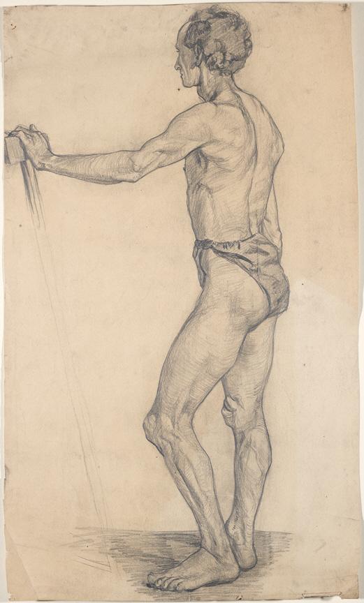 Title: Standing Male Nude Holding a T-Square; Male Nude Leaning on a Pedestal (on verso)