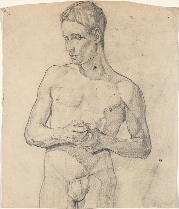 Title: Standing Male Nude Holding a Staff (Head and Torso)
