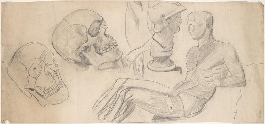 Title: The Venus de Milo; Two Skulls, Hera and Theseus (on verso)