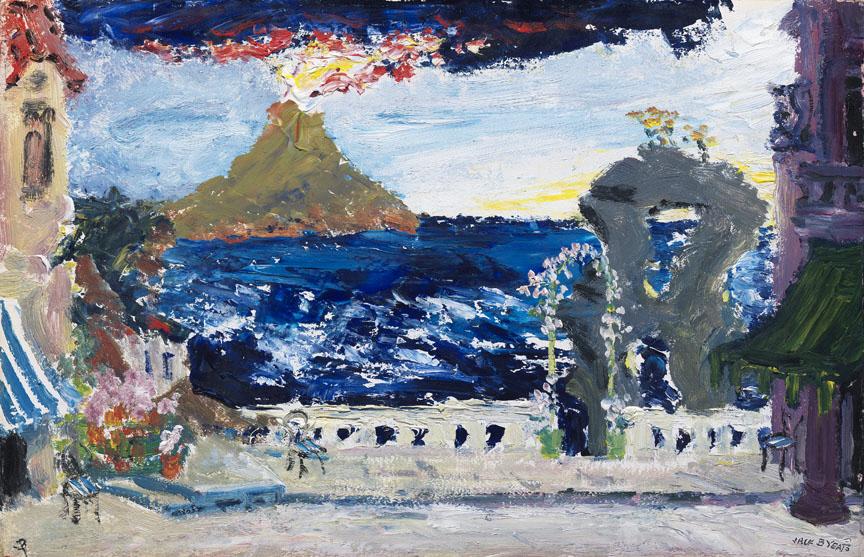 Scene One of the Four Scenes in Search of Characters, set in Naples, recalls the adventures of Yeats's early heroes, although none of his juvenile dramas is set in Italy. Vesuvius can be seen jettisoning flames into the dark blue sky. In the foreground is a terrace looking on to the sea. The buildings to each side have coloured awnings and inviting entrances, and the scattered chairs, the grotto-like arch, and the opening in the balustrade where there must be a path up from the sea, are ready for action. The choppy sea and the volcanic mountain are the only signs of life so far, awaiting the characters to make their entrance.