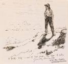 Cropped letter from William Orpen to Mrs St George with a sketch of the artist at Howth on the reverse