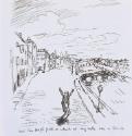 Cropped illustrated letter from William Orpen to Mrs St George with a sketch of the artist in Dublin