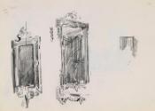 Two Priests in Court and a Barrister's Head; Two Ornately Framed Mirrors (on verso)