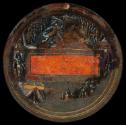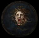 Label TextThis painted shield is of a type known as a parade shield, produced for display in military and religious pageants in Italy in the sixteenth and seventeenth centuries. In Greek mythology, Medusa was one of three sisters, known as Gorgons, who were cursed with snakes for hair and ferocious faces. According to the myth, anyone who looked directly at the monsters’ faces was turned to stone - a power retained even after the Greek hero Perseus beheaded Medusa. Caravaggio famously painted a similar Medusa shield in c.1598 for his patron Cardinal del Monte.