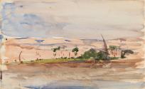 Boats on the River Nile, Egypt; Trees by the River Nile (on verso)