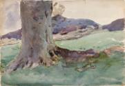 A Tree Trunk; a Blue Mountain (on verso)
